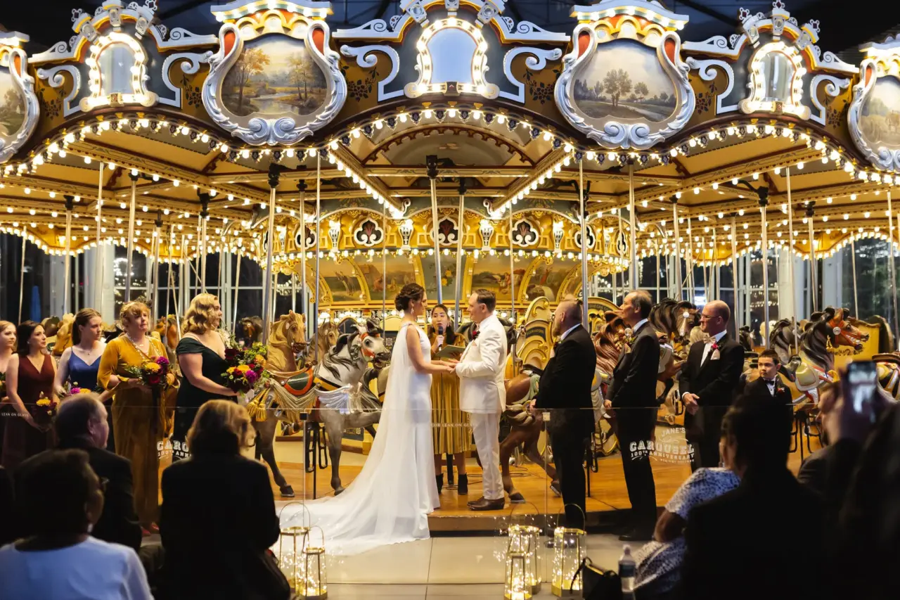 Egy pár egy körhintán házasodik.